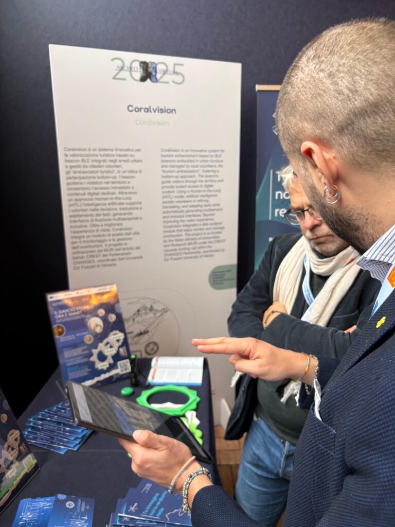 Tra i progetti andati in scena anche CoralVision, progetto del centro di ricerca privato iInformatica Srl, cofinanziato dal MUR tramite il bando CREST del partenariato CHANGES e coordinato dall’Università Ca’ Foscari di Venezia, che presenta un sistema innovativo per la valorizzazione del patrimonio culturale e turistico.